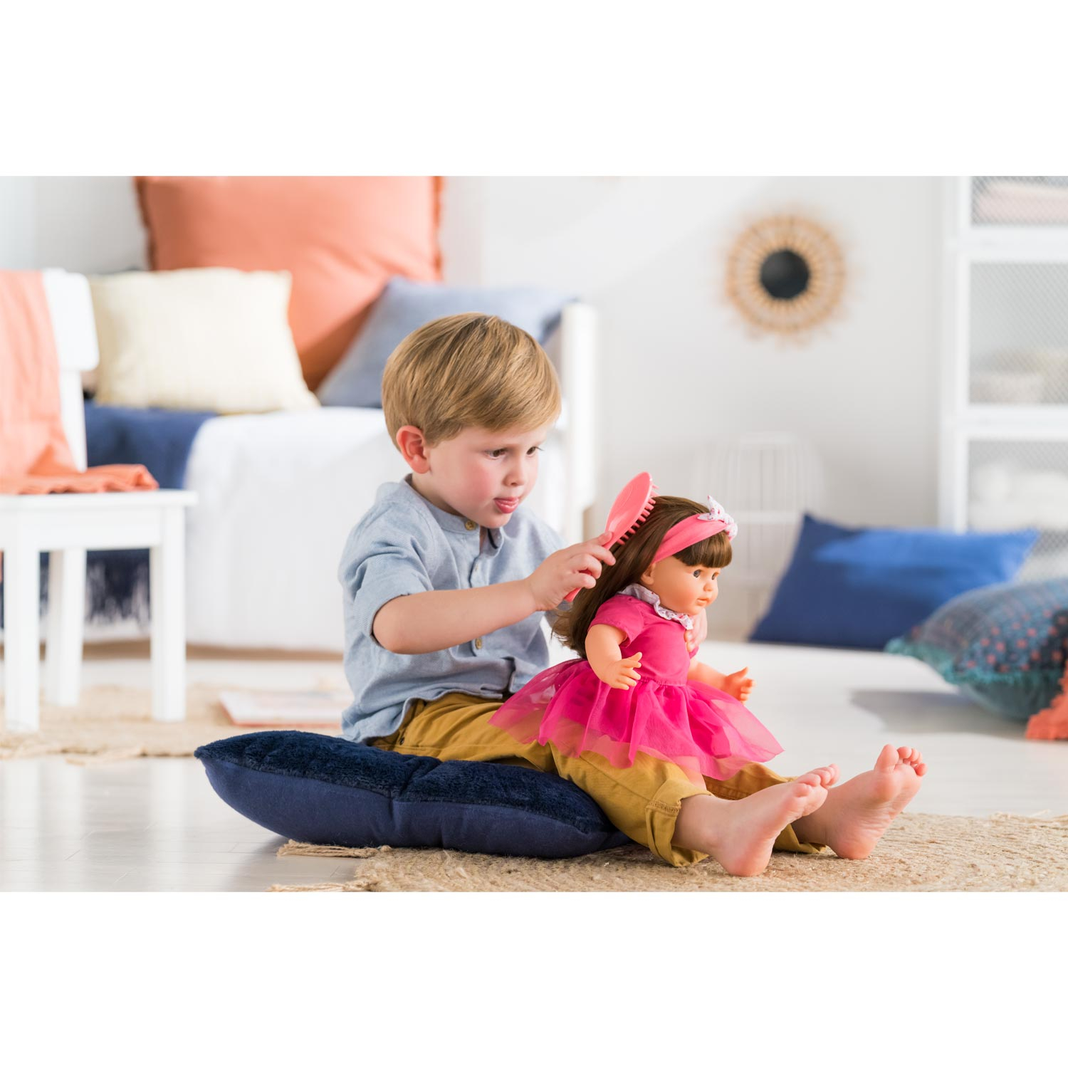 Alice is a 14-inch, soft-bodied mon grand poupon Corolle baby doll for little ones wanting a baby of their own to love. With her long easy-to-style hair, children ages 2 and up are introduced to hairstyling play (hairbrush included).
