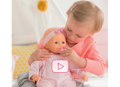 It's time for a walk and make-believe moms and dads will love taking their favorite 14" - 20" baby doll for a stroll in style. Its handle height is adjustable from 14" to 29.5" to accommodate children as they grow. It has an adjustable hood, a storage basket for baby's things, a removable bassinet cover and comes complete with a matching nursery bag. When playtime is over, the carriage folds easily for space-efficient storage. It's part of the Mon Grand Poupon Corolle Collection of dolls, fashions and accessories to help little ones take care of their baby doll the way their parents take care of them.