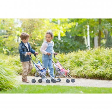 Inspired by those for real babies, our Umbrella Stroller for large, 14- to 17-inch baby dolls is lightweight and foldable, easy to take along and easy to store when not in use. Two security closures help to protect small fingers from getting pinched.